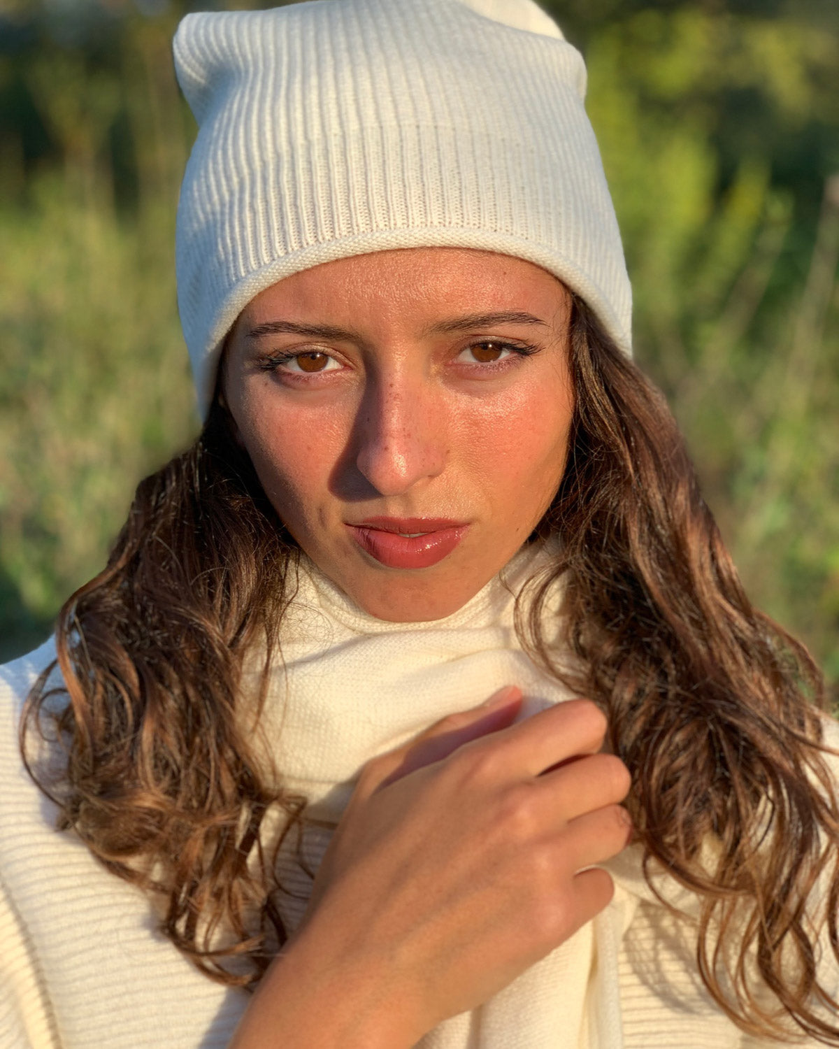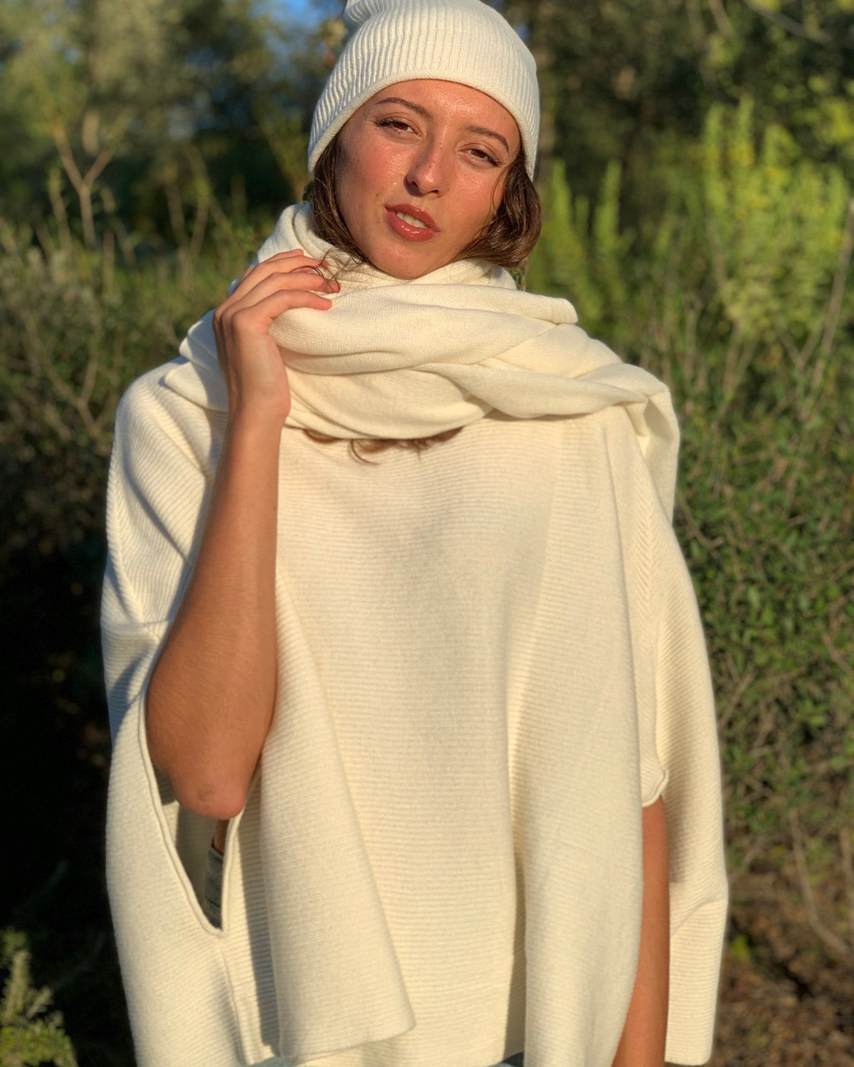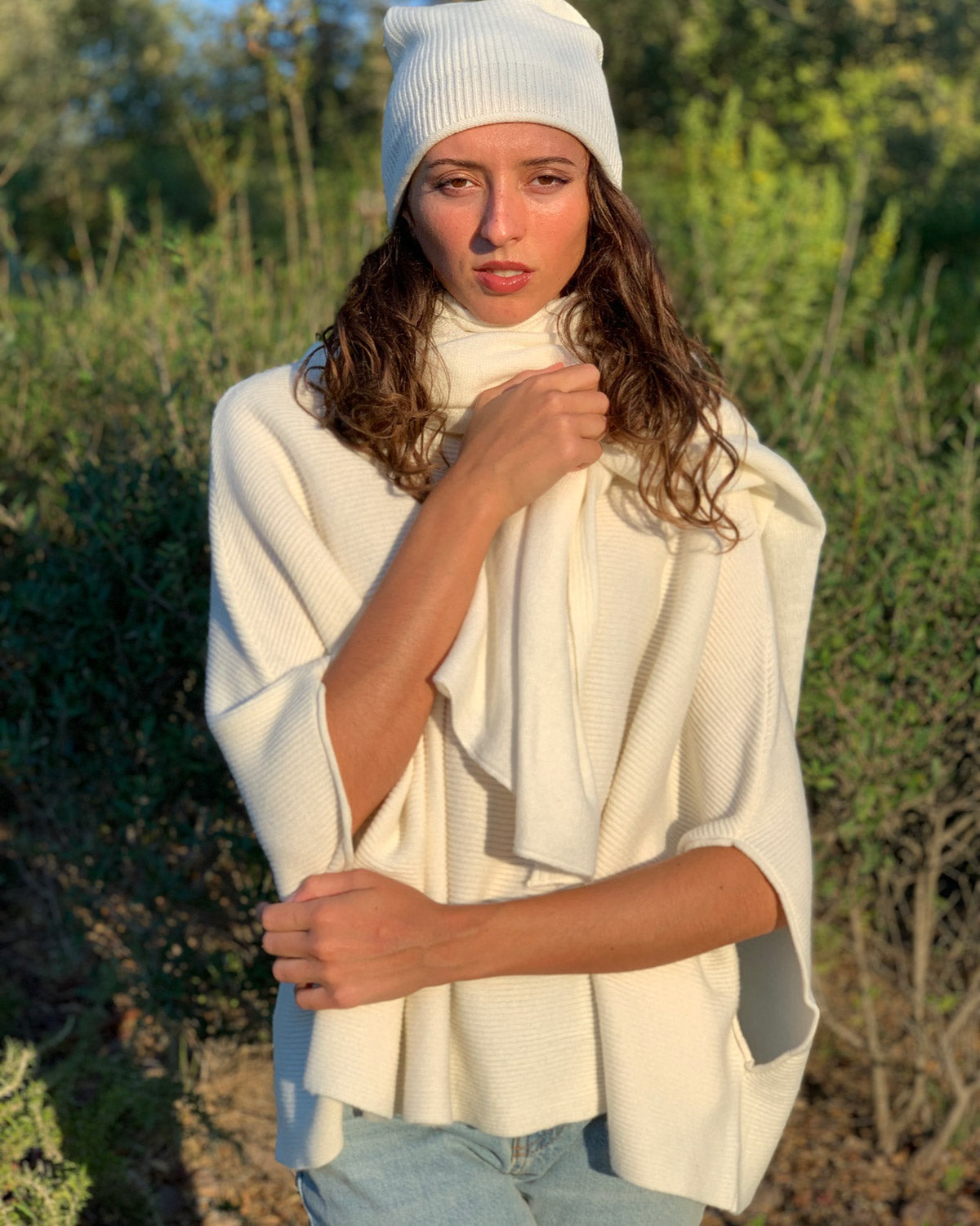 Italian cashmere knit into a cozy hat for après-ski and around town.