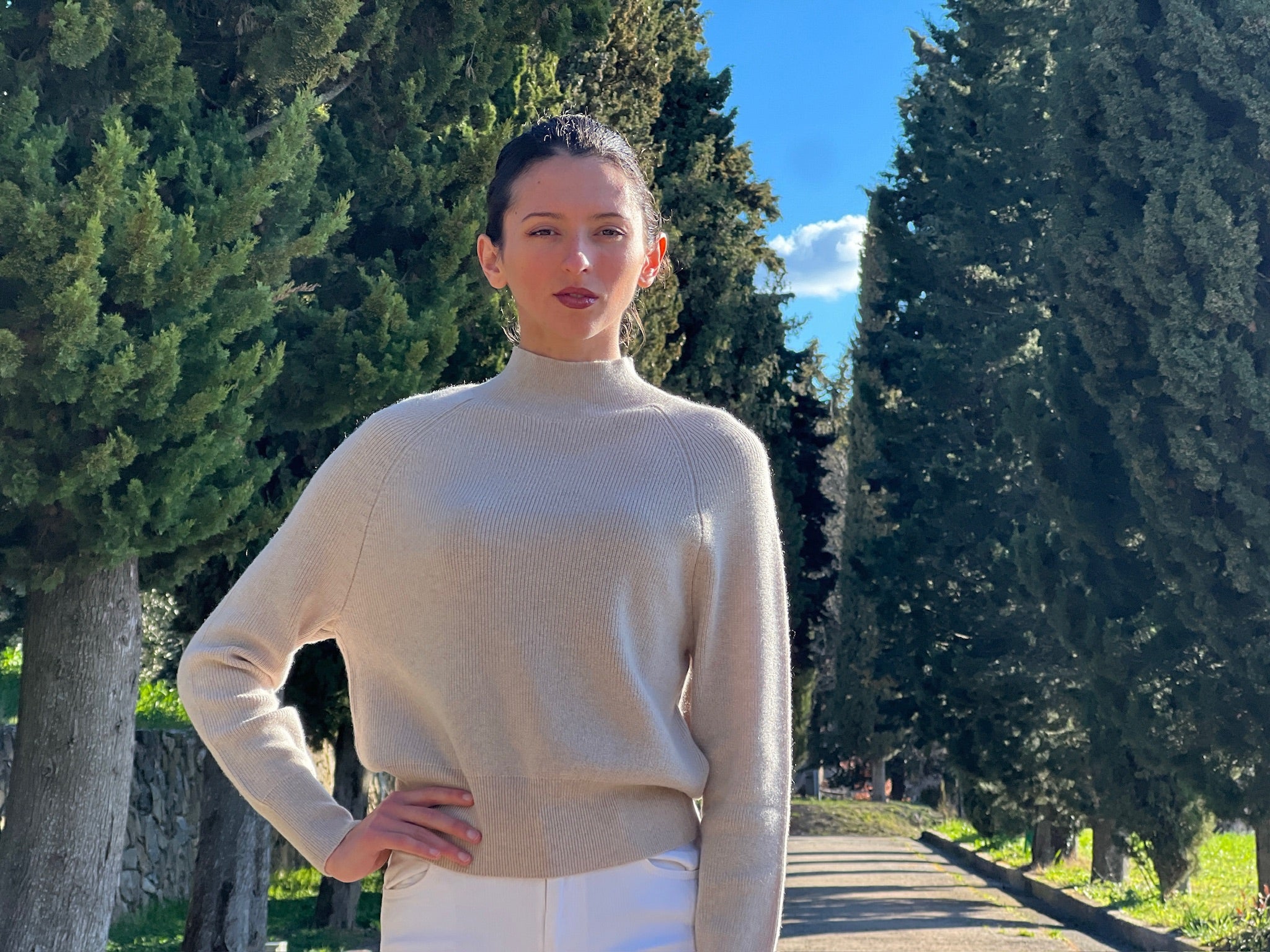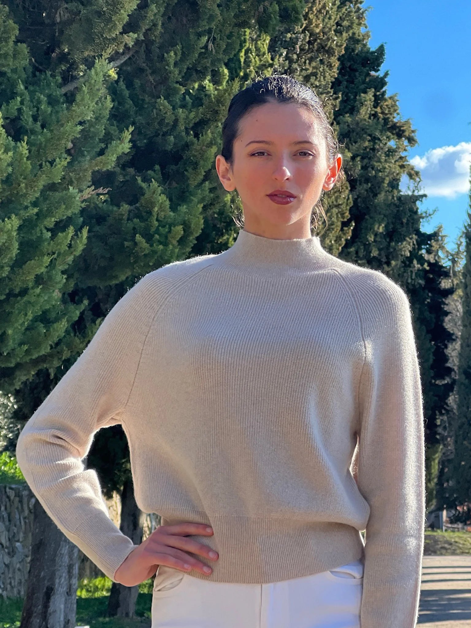 Knit in two-ply Italian cashmere, the Orvieto Pullover offers a gentle sense of warmth and ease. The fitted shape and subtle rib detail create a silhouette that feels polished yet relaxed — a piece to wear through the changing seasons, layered or on its own.