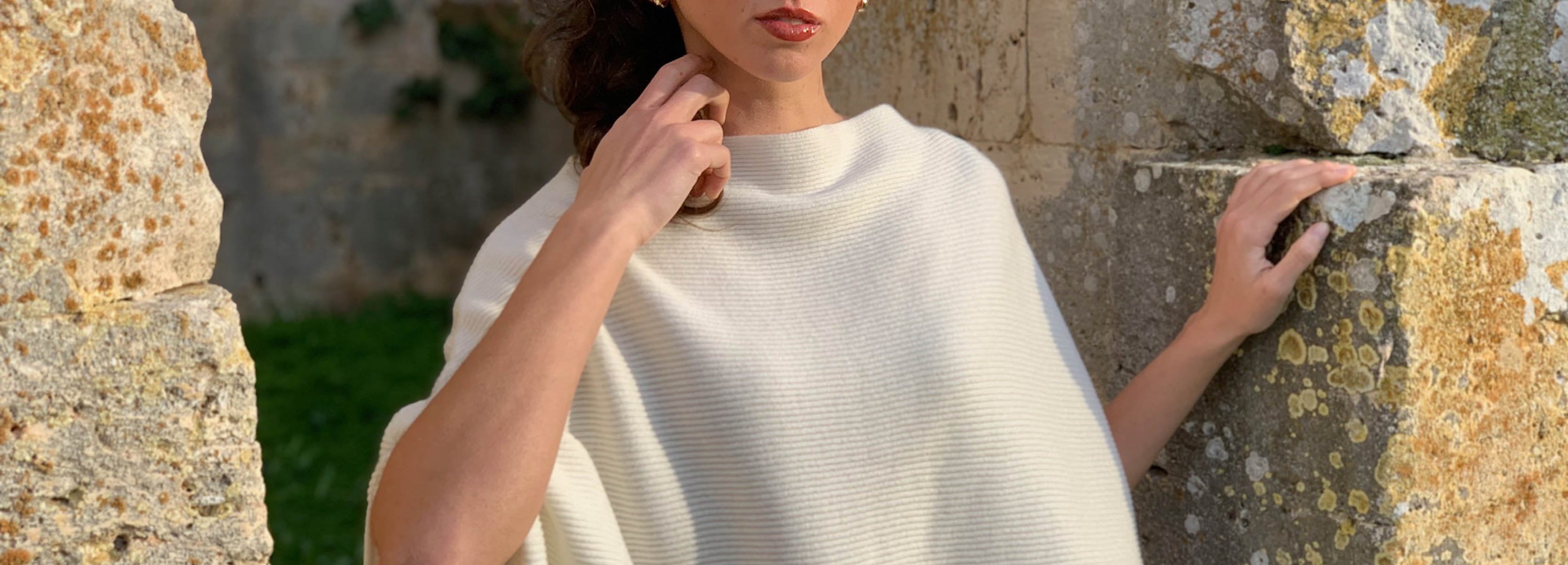 The Perugia Cape is an ideal layer that is as pracitcal as it is effortlessly elegant. Horizontal tactile ribbed finish defines this relaxed, oversized two ply cashmere, easy to wear and perfect for travel. Made in Umbria
