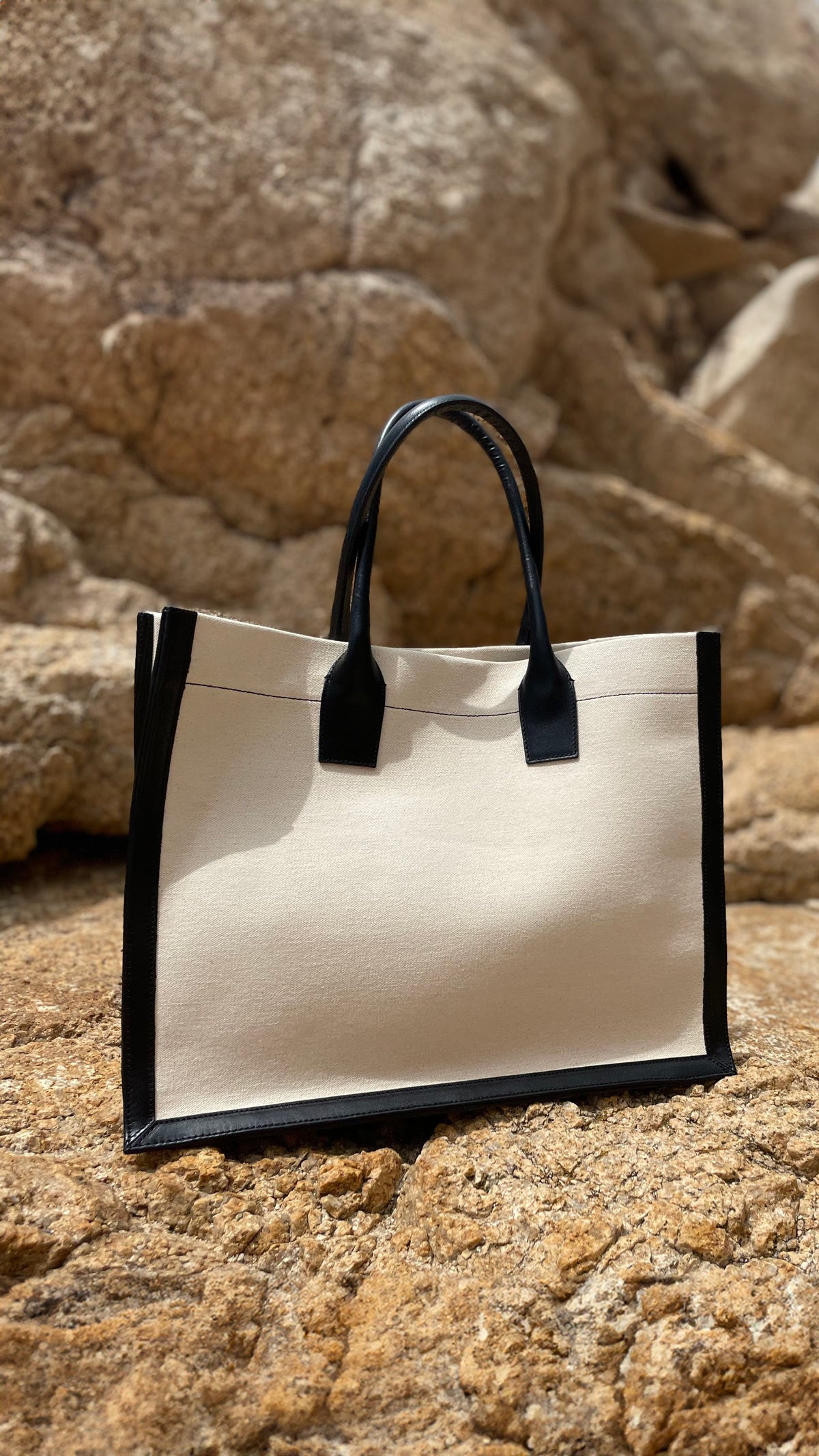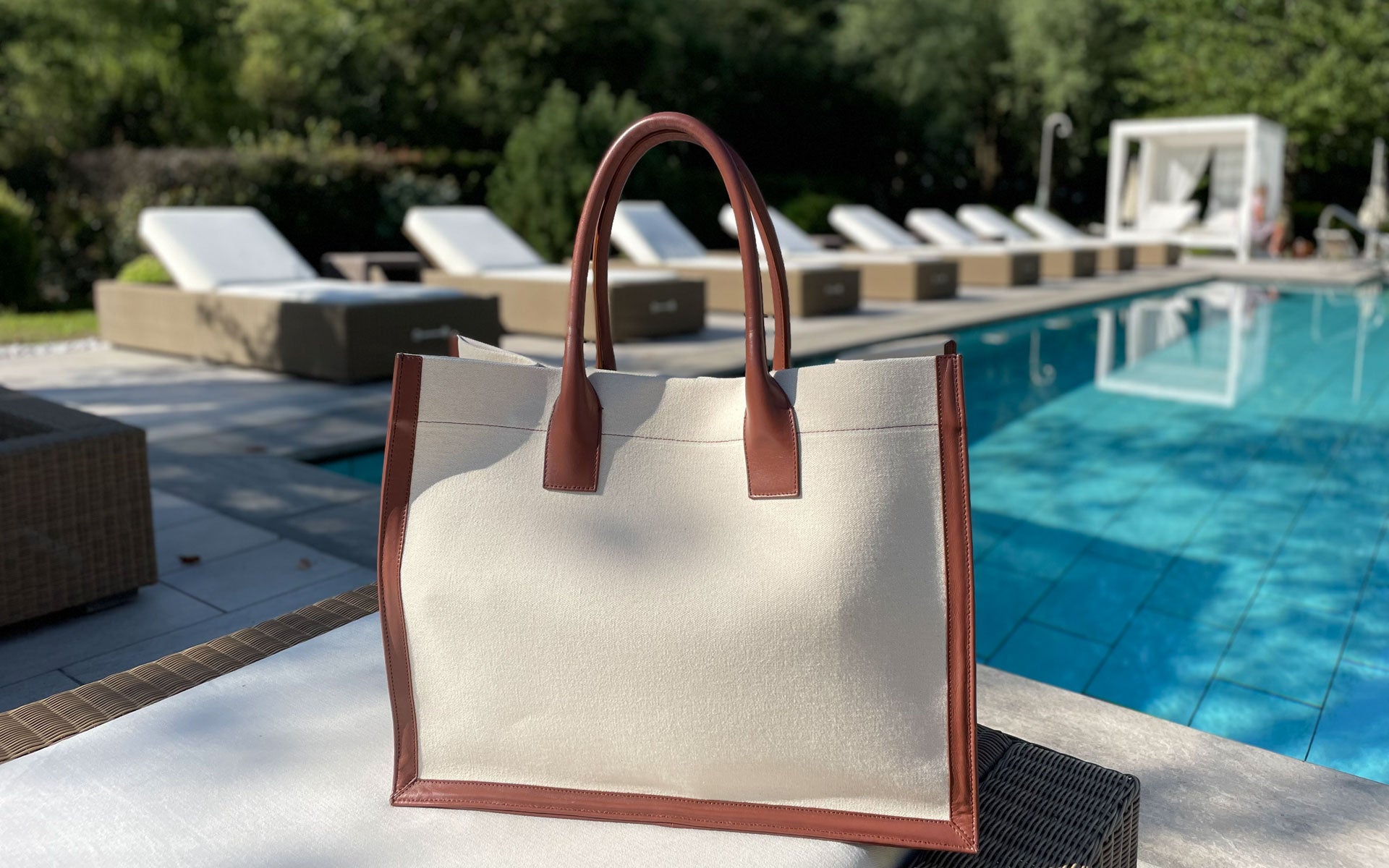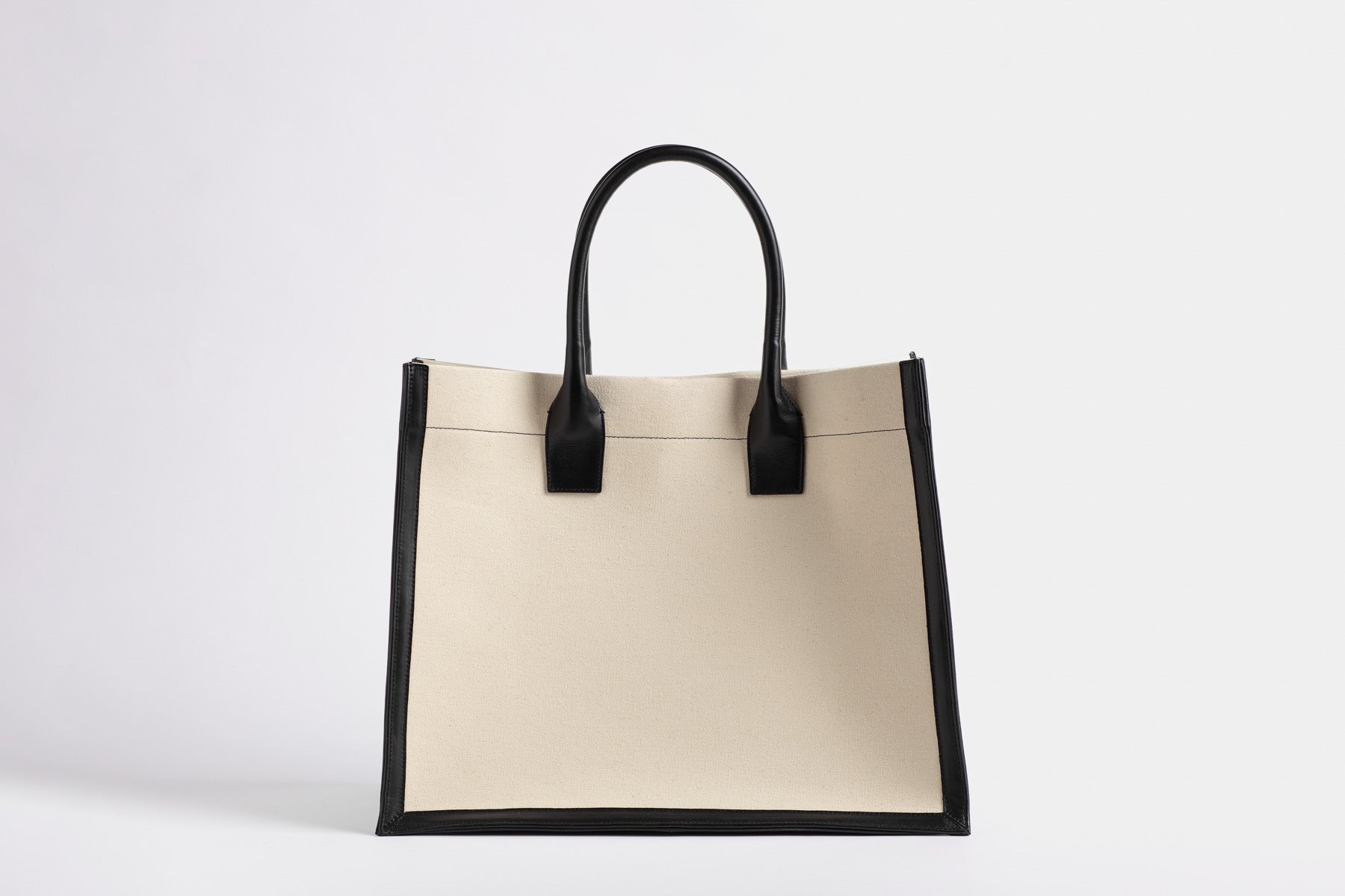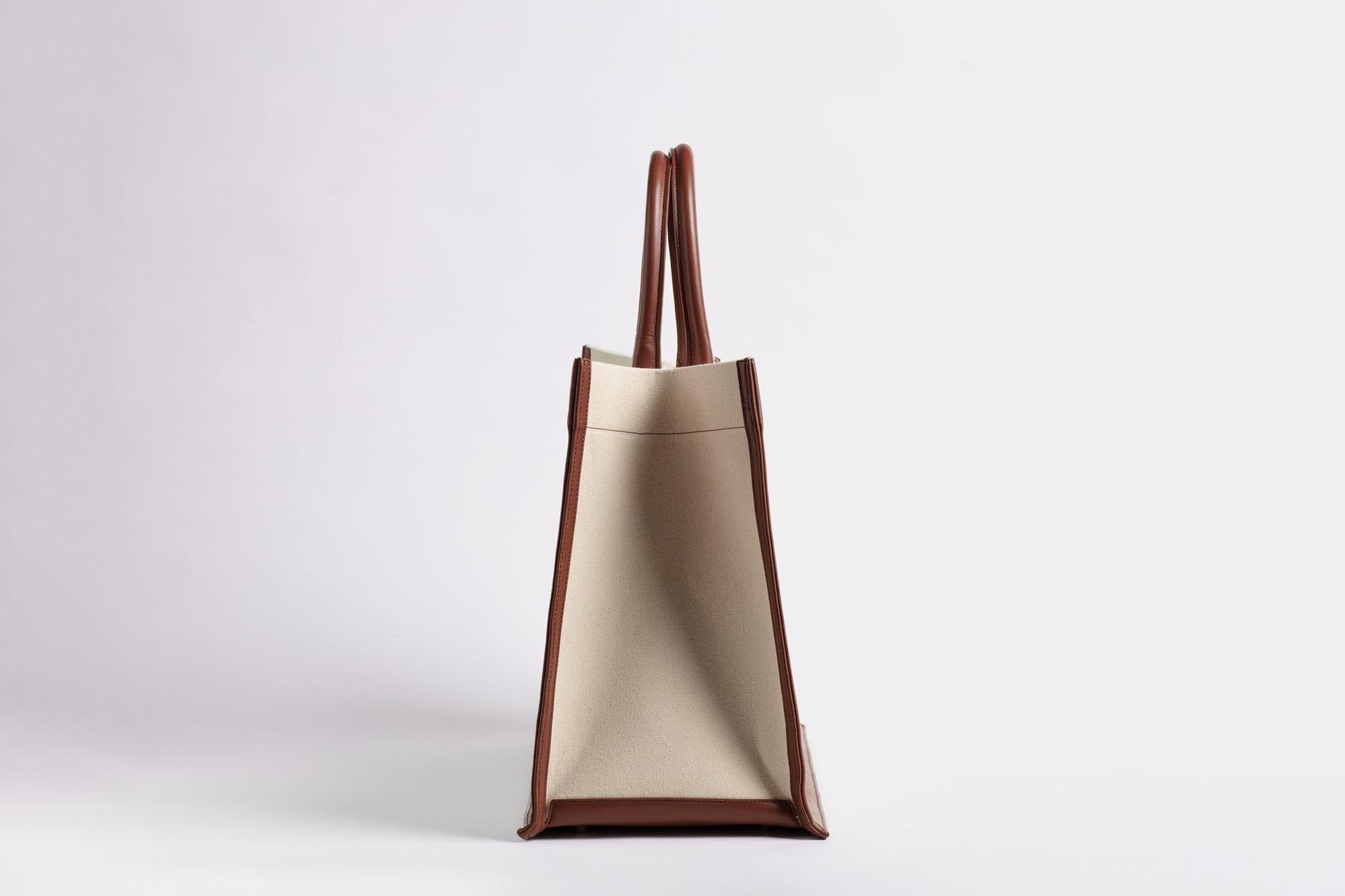 The spacious and versatile Portofino Tote is crafted in Italy from canvas with contrasting nappa leather trim. It includes a coordinating Portofino clutch for your valuables, which has a cardholder-style wallet interior. Its generously proportioned design includes interior pockets, with ample room for a laptop, cashmere and other essentials, this timeless structured tote offers a perfect blend of style and functionality.