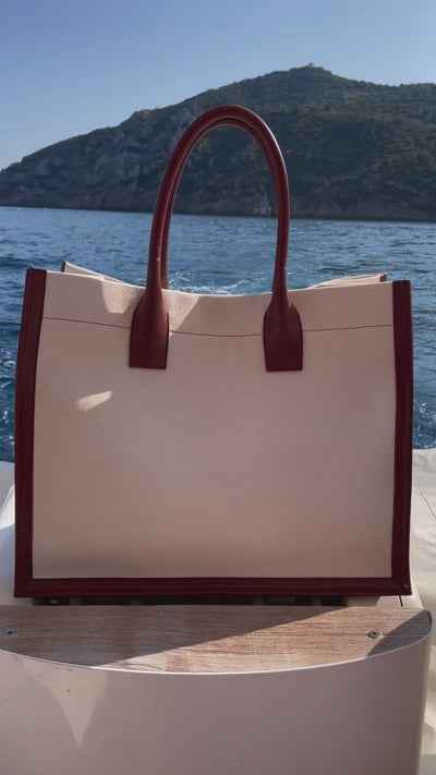 The spacious and versatile Portofino Tote is crafted in Italy from canvas with contrasting nappa leather trim.