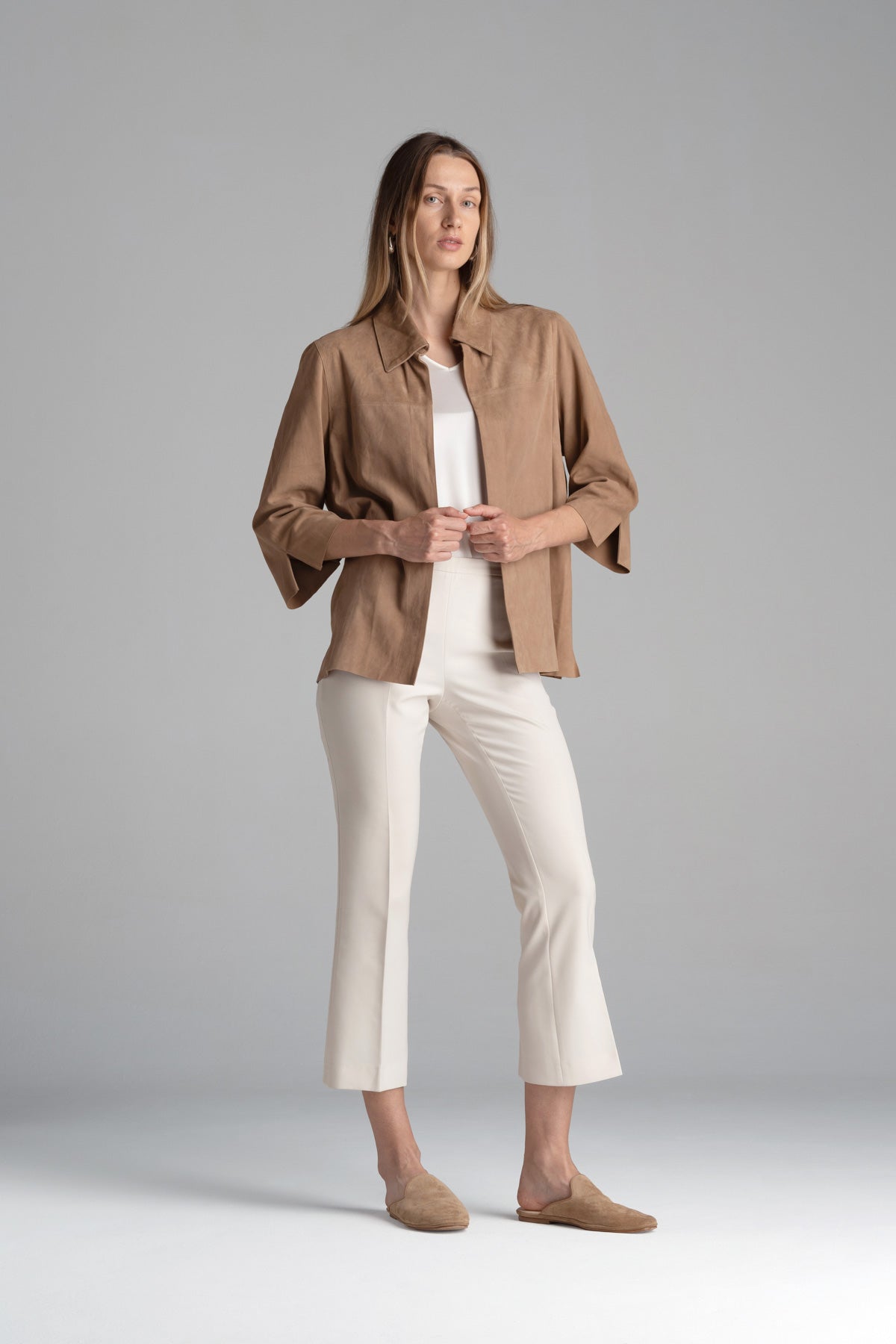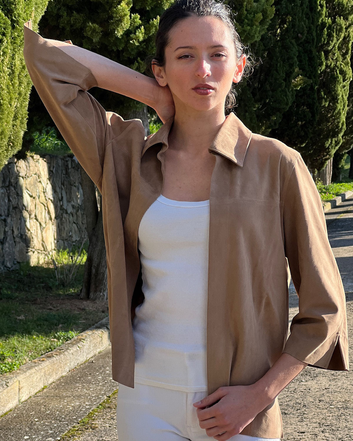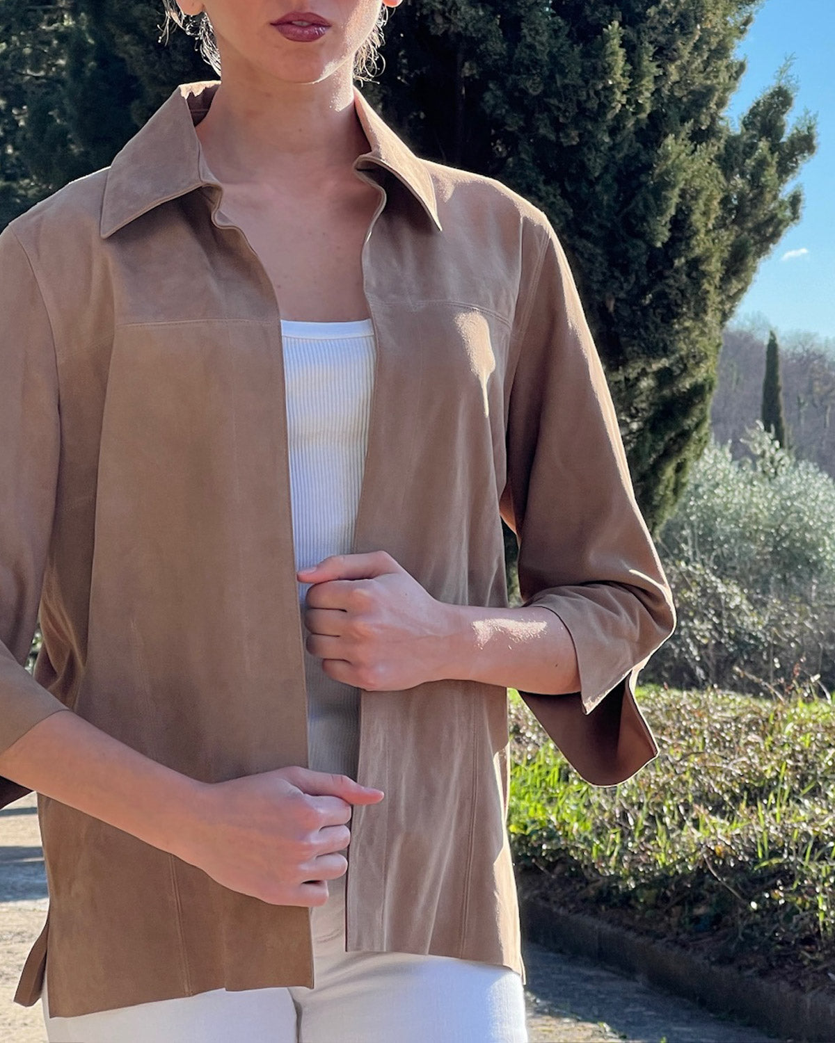This versatile style suede shirt jacket is designed for a relaxed fit, it is a great layer and transitional piece.