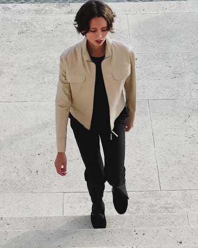 Refined and versatile, the Trionfale Jacket in nappa leather is designed with a relaxed silhouette that carries easily from day to evening. A modern layer with timeless appeal.